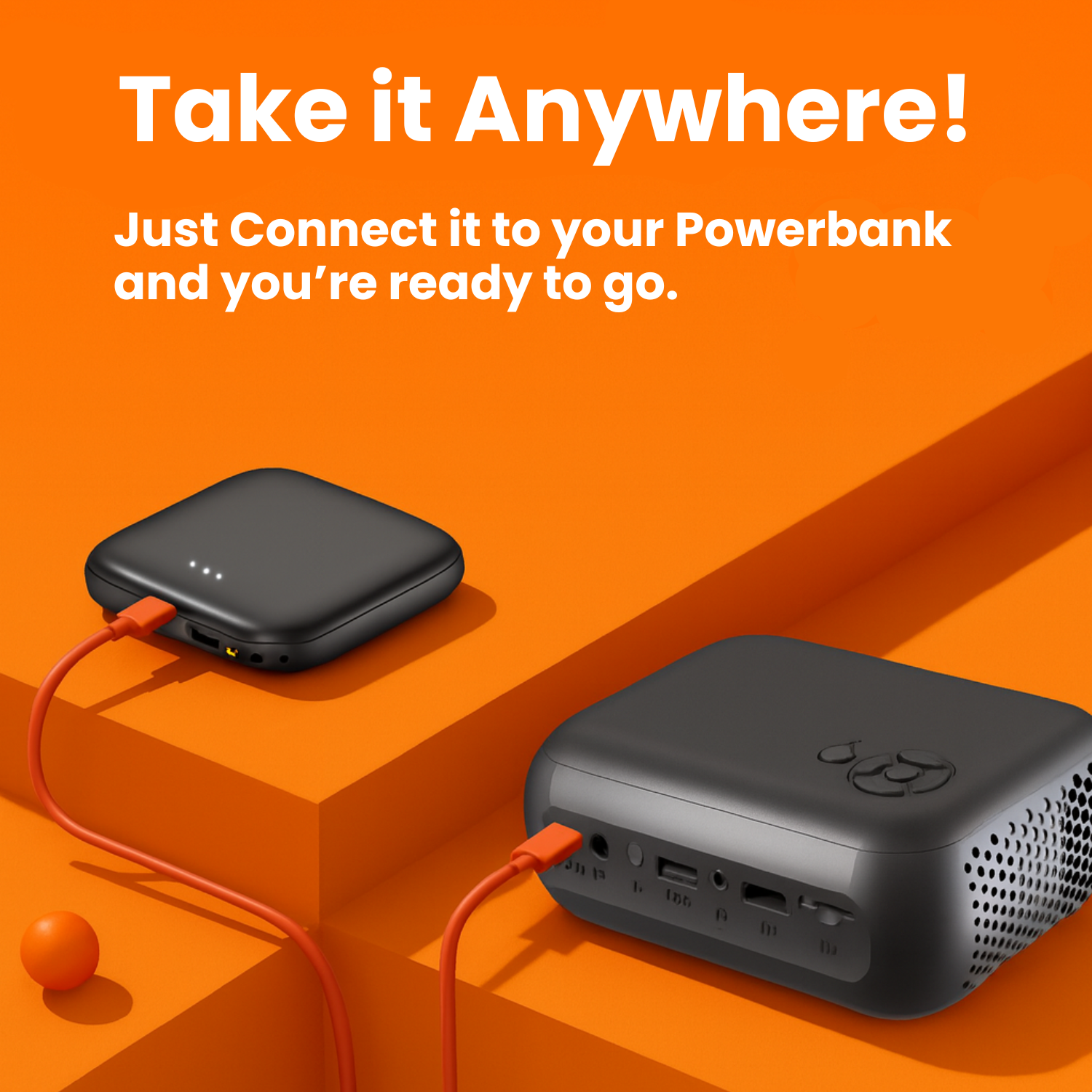You can power it directly from a power bank, making it perfect for camping, car setups, or outdoor movie nights. Any standard USB power bank with at least 18W output works great.