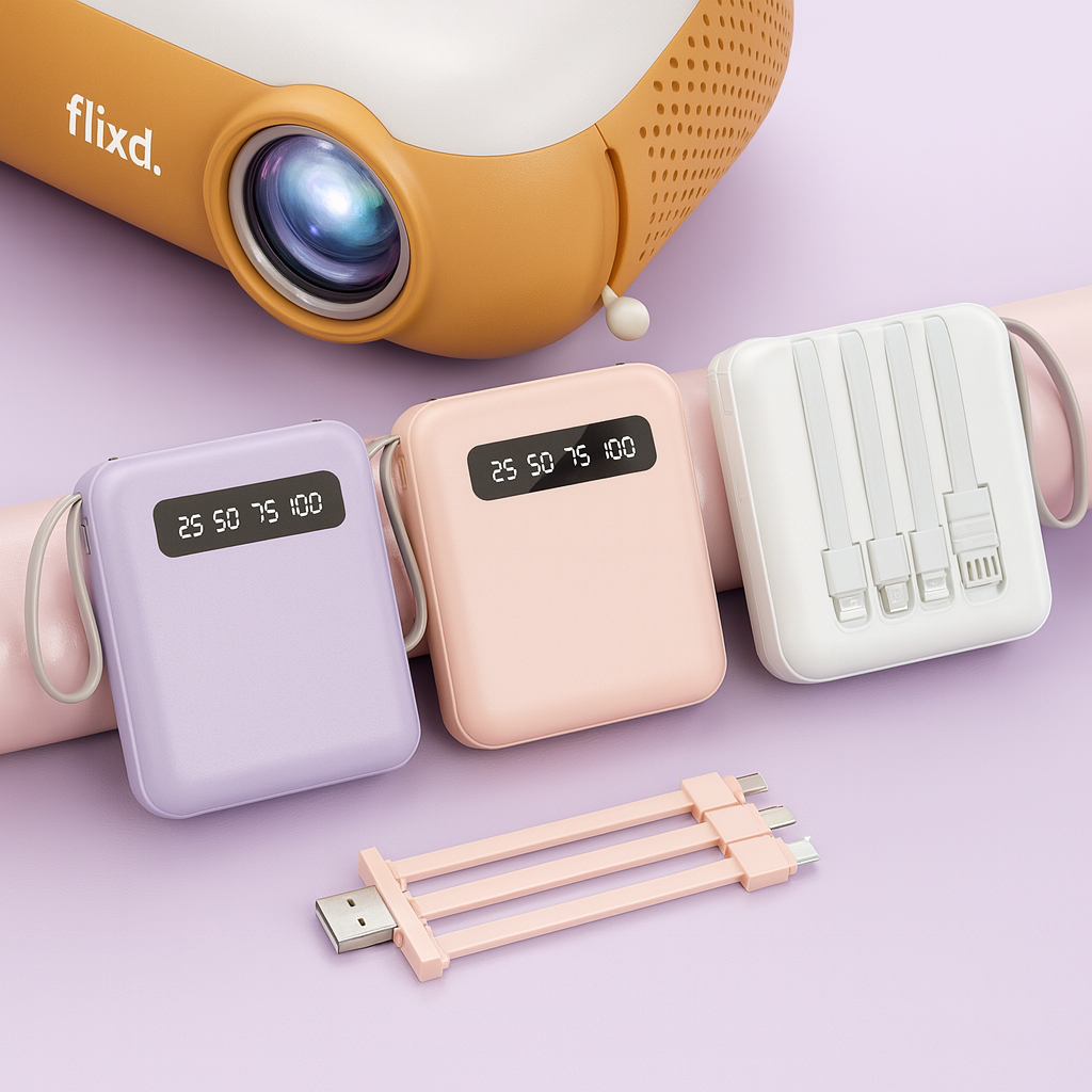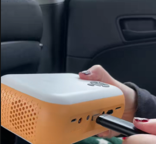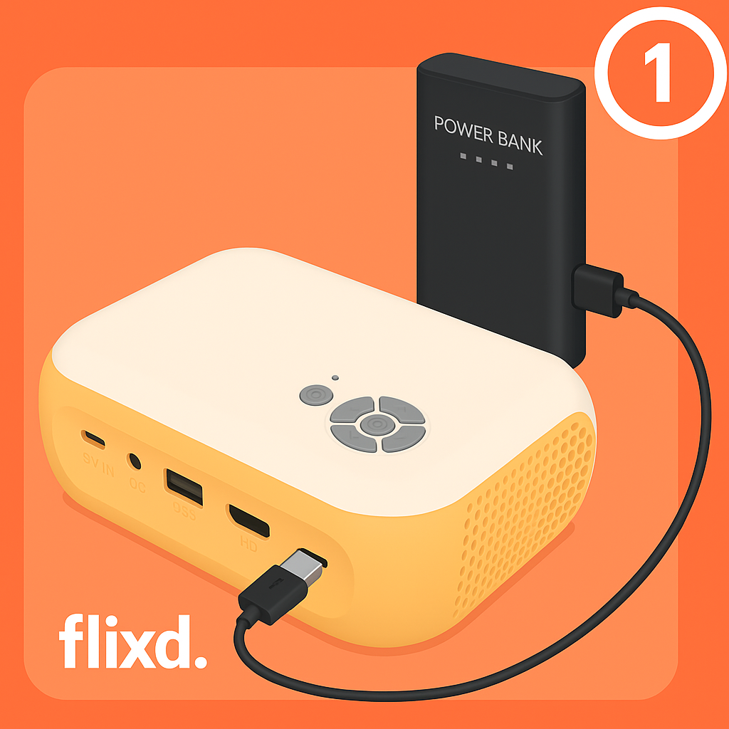 You can power it directly from a power bank, making it perfect for camping, car setups, or outdoor movie nights. Any standard USB power bank with at least 18W output works great.